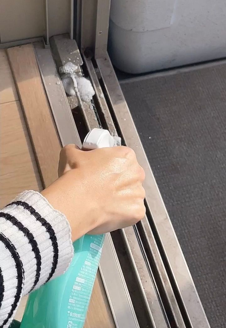 窓サッシにスプレーしてから、いらない布などでこすれば簡単綺麗に‼
