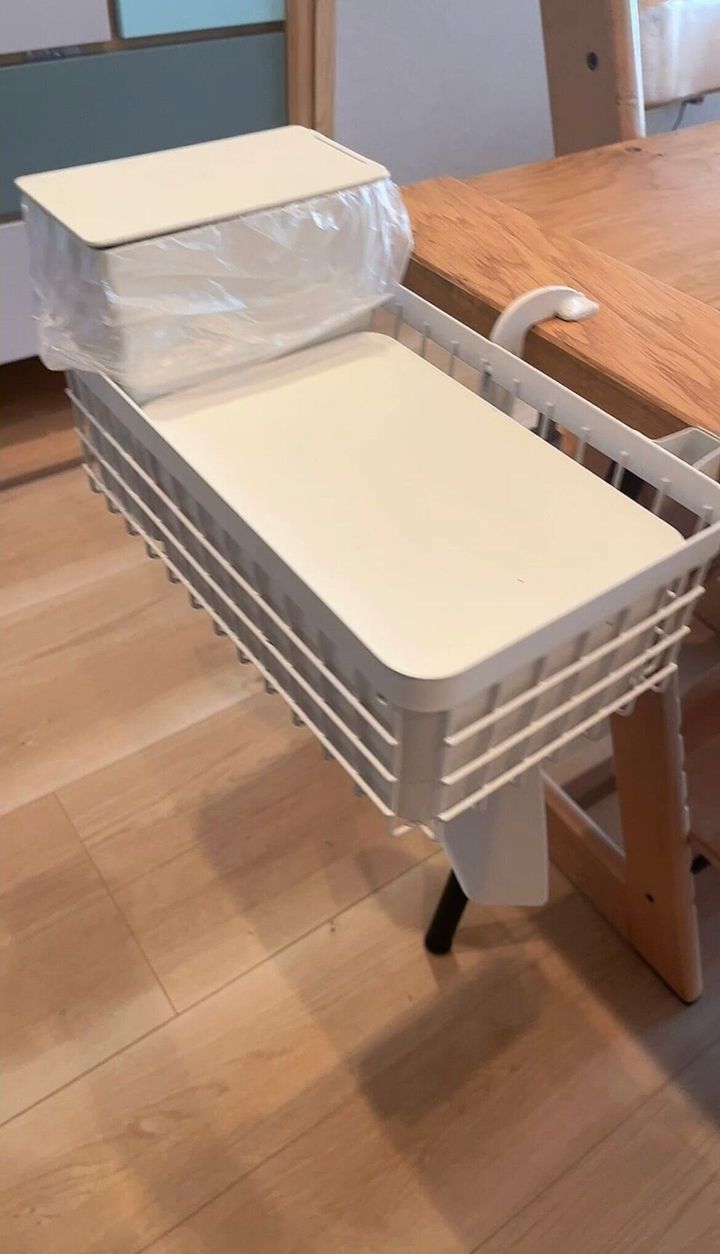 こちらはダイニングテーブルに引っ掛けて浮かせるタイプのモノ。