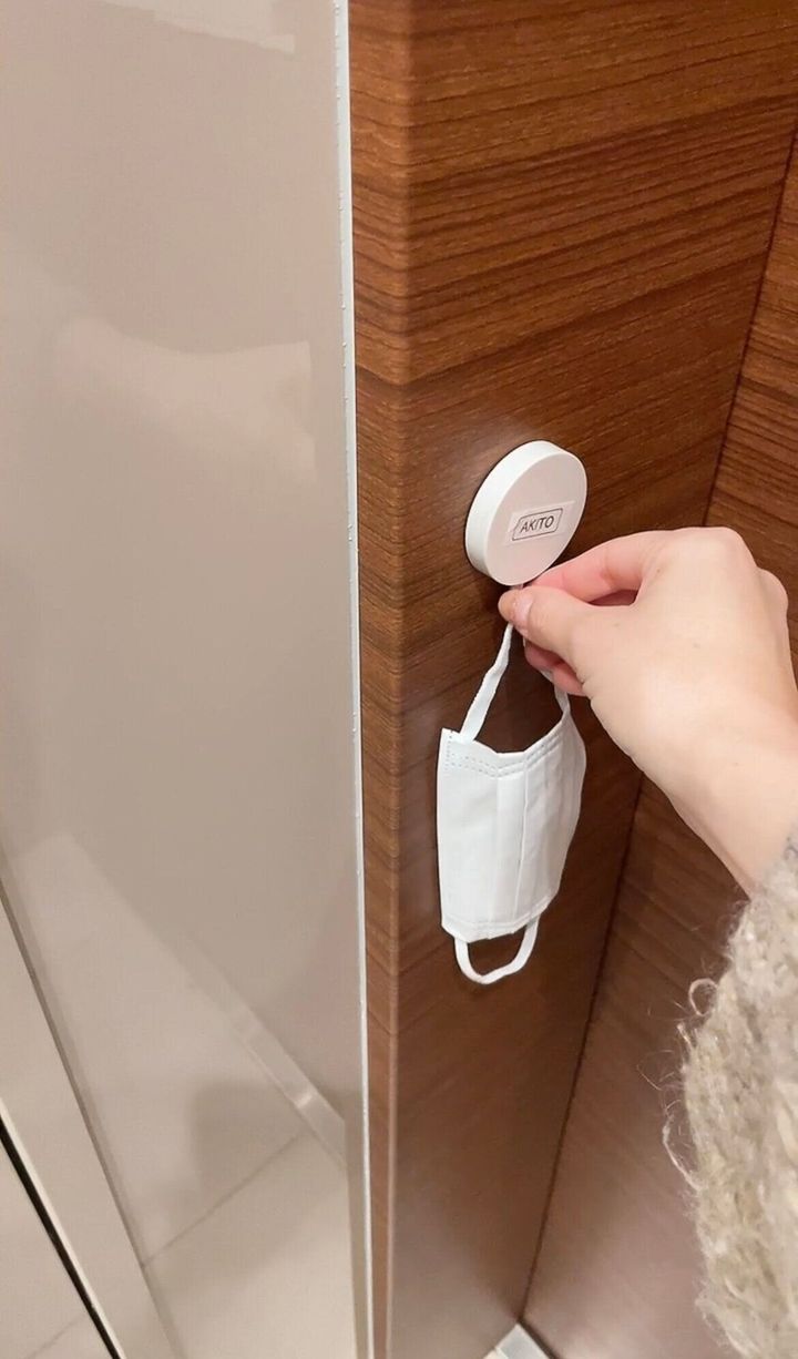 我が家では”マスクを一時置き”のため、マグネットフックを活用しています。