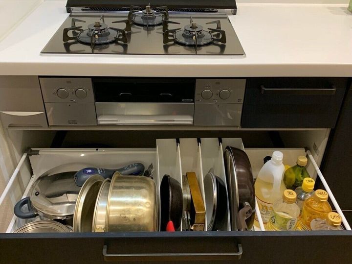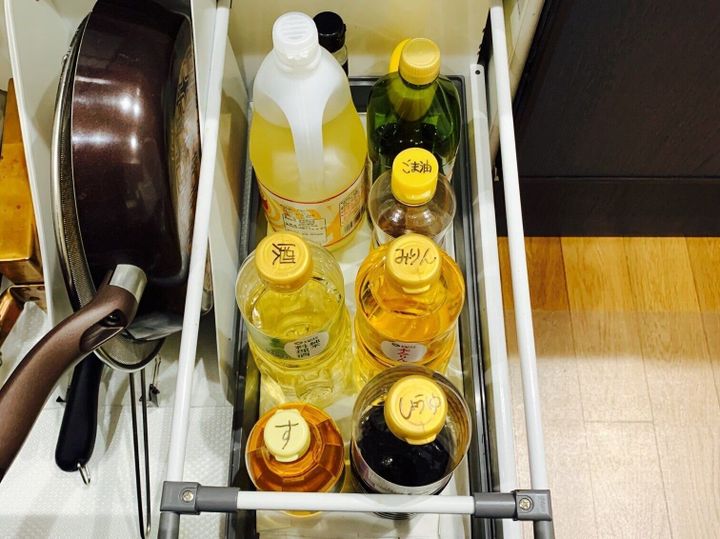 調味料はコンロで使う事が圧倒的に多いので、コンロ下の引き出しに入れています。