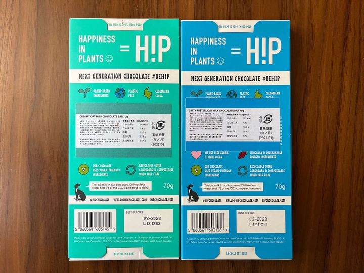 ビビッドなパッケージが印象的な「H!Pチョコレート」。昨年11月に日本に上陸した、イギリス発のヴィーガンミルクチョコレートです。