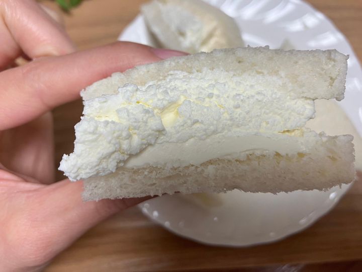 袋を開けるとたっぷりとクリームが詰まったサンドイッチが出てきました!