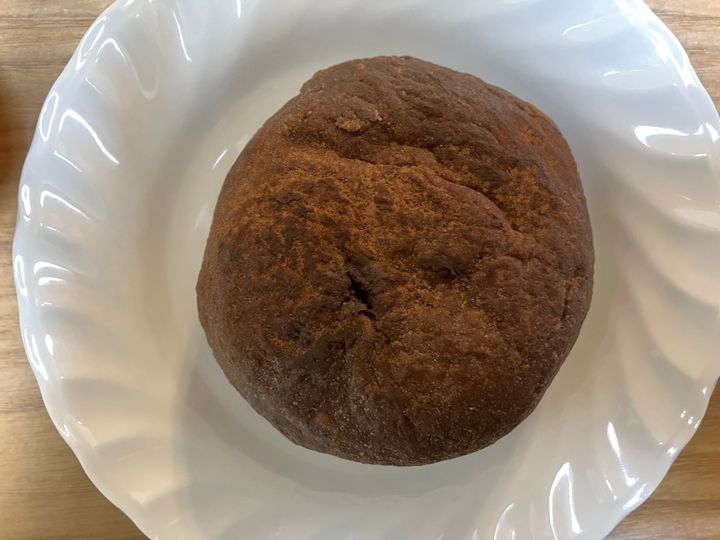 もっとチョコパウダー的なものが沢山かかっているかと思っていたのですが、横からみるとそこまでかかっていません。厚みはあるので食べ応えはありそうです。