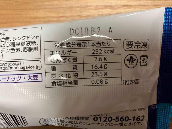 太さもあって大きいので、小枝とはいえない見た目です。重さと見た目からこれ一本でも十分食べ応えがありそうなことはわかります。カシューナッツが沢山入っているので、ザクザク食感は期待できそう。