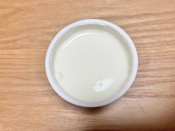 ヨーグルトの色は、プレーンヨーグルトのように白。実際みると若干黄色みがあるような白にも見えます。