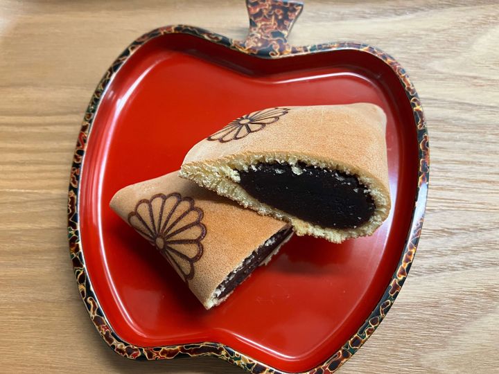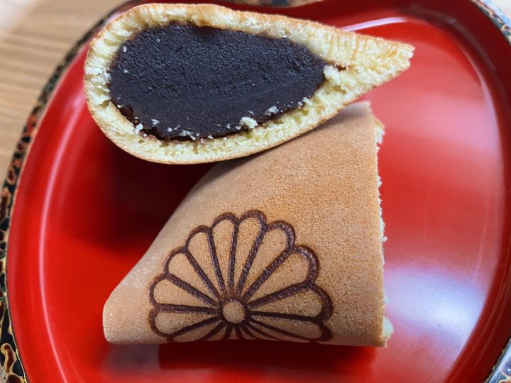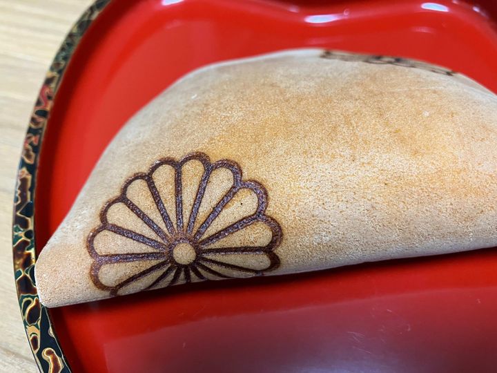 どら焼きの表面には天皇家の菊の御紋があしらわれていて、品格を感じられる仕上がり。