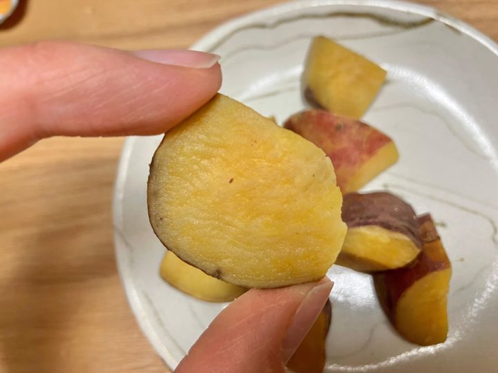 まず常温で食べてみると、ねっとりとした食感でさつまいもの甘さがありました。