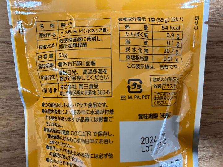 袋を開けた時は思ったよりあまり入っていないように感じられましたが、さつまいもということもあり、食べると結構お腹が満たされたのでダイエット中にはおすすめです。