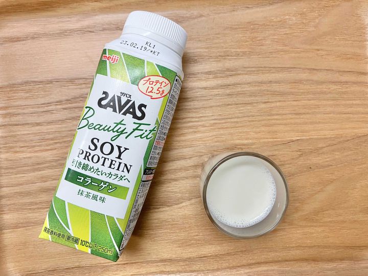 抹茶の味と大豆の味がうまく混ざり合っていて、運動後にも飲みやすそうなすっきりとした味わい。抹茶味の豆乳よりも軽い感じがします。抹茶風味なので、抹茶の味もそこまで強くありません。ただ、少し独特な味もするので、苦手な方もいるかと思います。