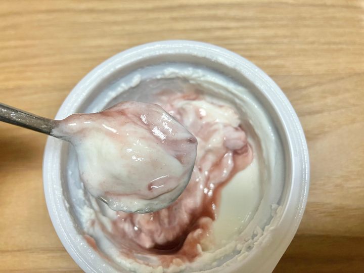 プレーンヨーグルトとソースを混ぜないで食べることも好きですが、混ぜると食感やソースの甘さが全体に広がるので美味しいです。