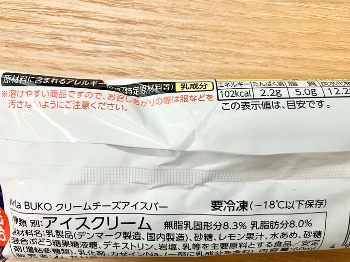 このアイスの嬉しいポイントが、一本102kcalと低カロリーなこと。購入してからカロリーの低さに驚きました。