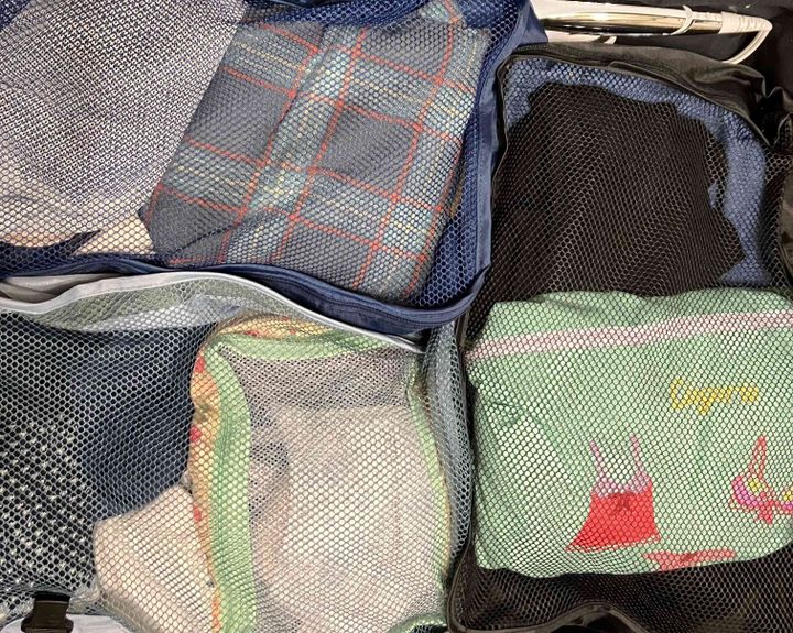 子ども別に鞄の色を分けて使用することで、家族に子どもの着替えの場所を伝える時も説明しやすいのでおすすめです。私用はポケット付きのケースを使用して、子ども用はポケットなしのケースを使用しています。数日間の旅行でしたら子ども服は十分収まります。私の服は子供との旅行の時は、出来るだけ嵩張らないように荷物を減らすことを意識しているので、この収納ケースに収まる量にしています。