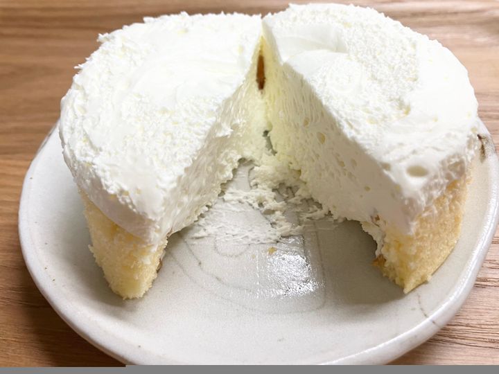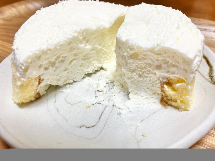 スポンジがクリームに囲まれていて、スポンジの部分もしっかりとあるはずなのに、少しだけしかないように感じてしまうほどのクリームの量。