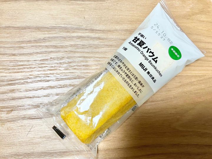 お次は「甘夏バウム」。こちらもあまり見かけないバウムクーヘンの味なので気になります。ただ、バナナやイチゴと違って甘さが強いフルーツではないので、どんな味なのか想像ができませんでした。説明文にもほろ苦さとあります。