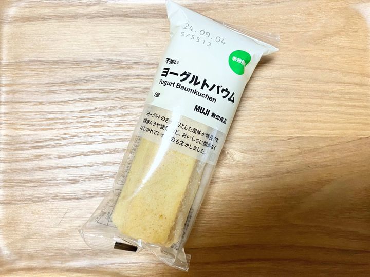 まずはヨーグルトバウム。説明文には、ヨーグルトのさっぱりとした風味が特徴と記載されています。ヨーグルト味のバウムクーヘンはあまり見かけたことがないので、乳製品好きの私は気になる味です。