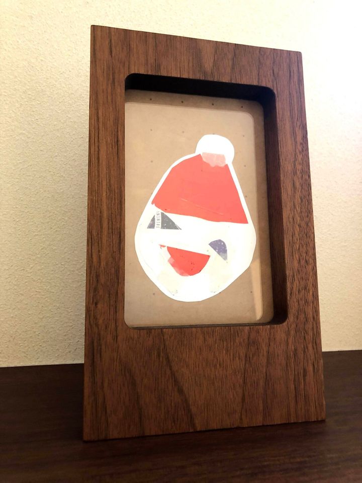 折り紙を切り抜いて創ったサンタクロースの作品は、額に入れてアートとして飾っています。