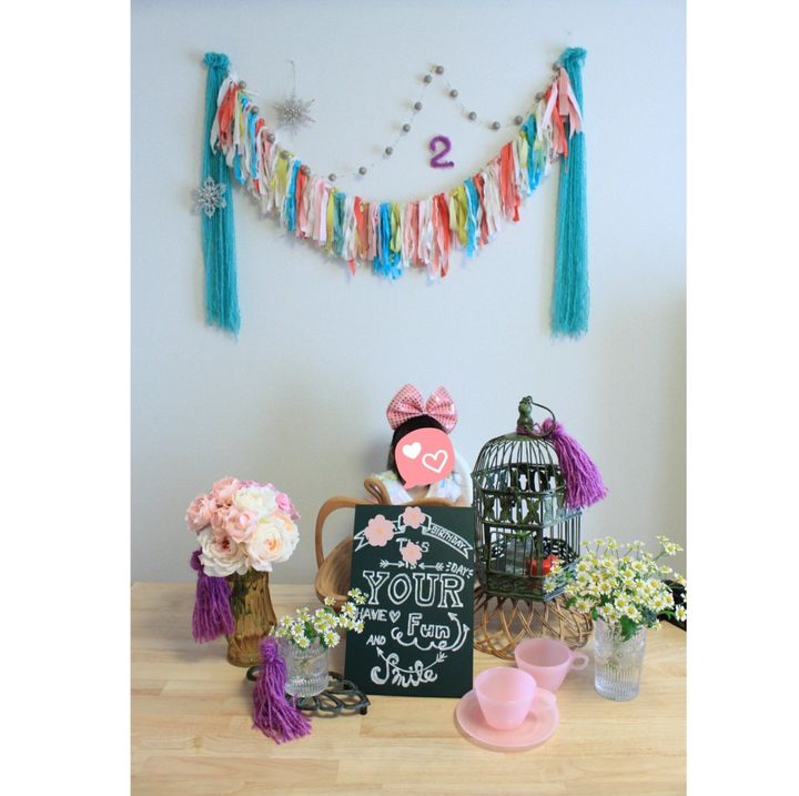 写真は長女2歳のバースデイおうち装飾の写真です。