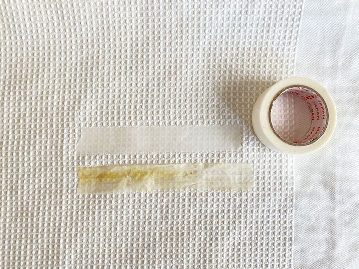 1年間1度も張り替えはしていませんが、たまに拭いたりしていたので、この部分に関してはほこりはありませんでした。ただ、マスキングテープを貼っていなかったら、シリコン素材にほこりがくっついてしまい、拭いただけでは取れなかったかと思います。もちろん、新しいテープに張り替え来年に備えます。さっと拭いてから、新しいテープを貼るだけ、簡単です。