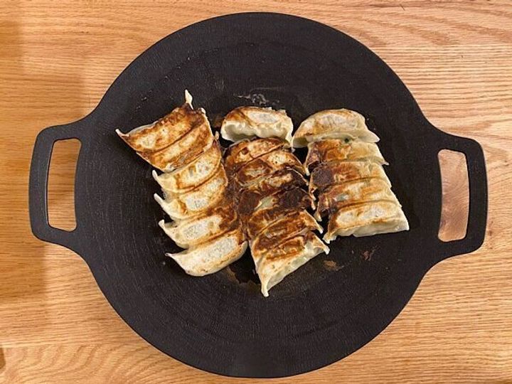画像は餃子を焼いた時のものです。油無しでもパリッと焼けました。
