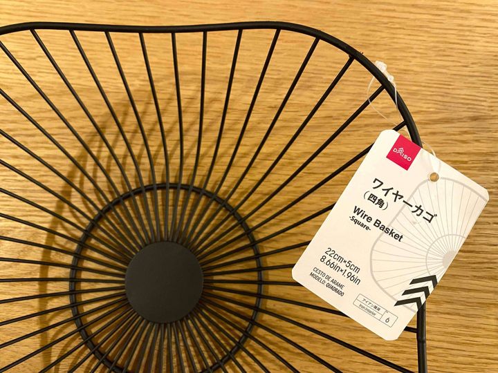 こちらのワイヤーカゴに、LEDキャンドルのサイズがぴったり!マットブラックのカラーが、110円(税込)には見えない素敵さです。