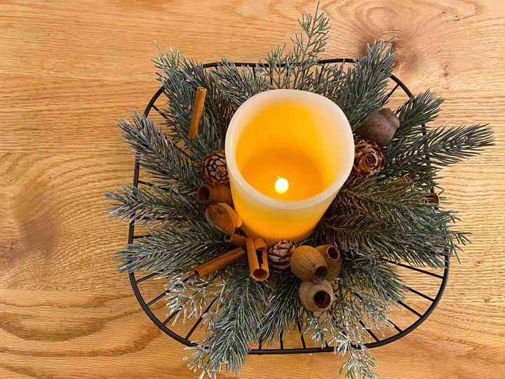 ちなみに写真のものは、娘が(幼稚園児)松ぼっくりやシナモンスティックを飾ってくれました。