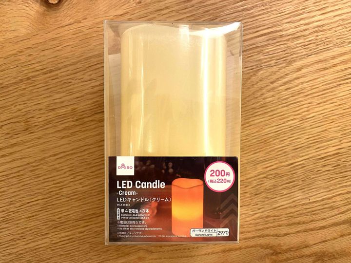 こちらのLEDキャンドルはクリームとホワイト2色あります。(今回使用したものはクリーム)LEDキャンドルなので小さい子供がいても安心して飾れるところがお気に入り。