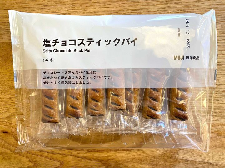 【無印良品】のお気に入りお菓子【塩チョコスティックパイ】。新商品ではないのですが、過去にはレア商品だと話題にもなっていましたがご存じでしょうか?今回は、そんな塩チョコスティックパイのレビューです。