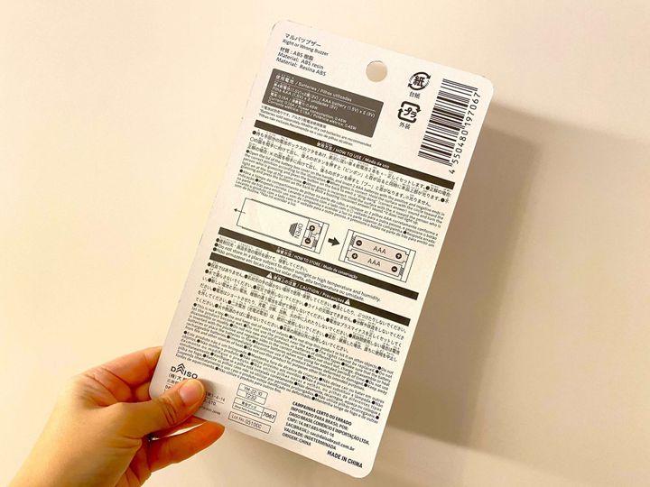 ダイソーで購入しましたが、マルバツブザーは300円商品(330円税込)です。電池は別売りなので、ご自身でご用意下さい。(単4乾電池を2個使用します。)