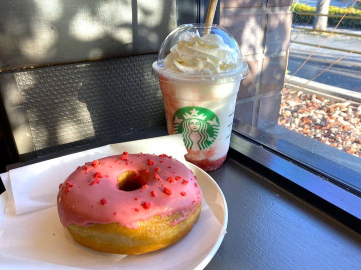 スタバ新作フラペチーノは、苺のフレッシュさとミルクの優しい甘味が感じられ、甘さ控えめなので初夏にぴったり!ストロベリードーナツと一緒に食べるのもおすすめです。