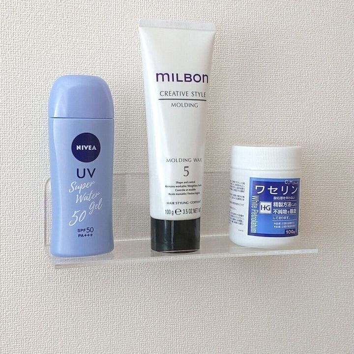 【セリア】壁に付けられるアクリル棚は家中で活躍する!透明で圧迫感がないからつかいやすい