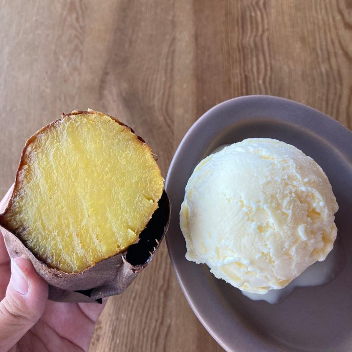 ・使う焼き芋の状態によって、アイスクリームの量がずいぶん変わります。写真のようなトロトロの焼き芋であれば、50gでもずいぶん柔らかい仕上がりになり。