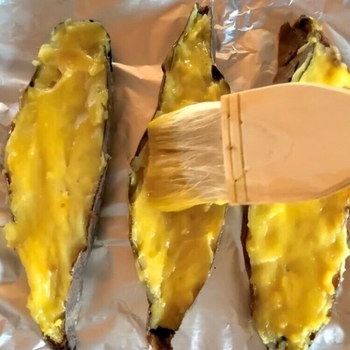 ⑤サツマイモの皮に④を入れる。全て入れ終わったらアルミホイルの上にのせる。