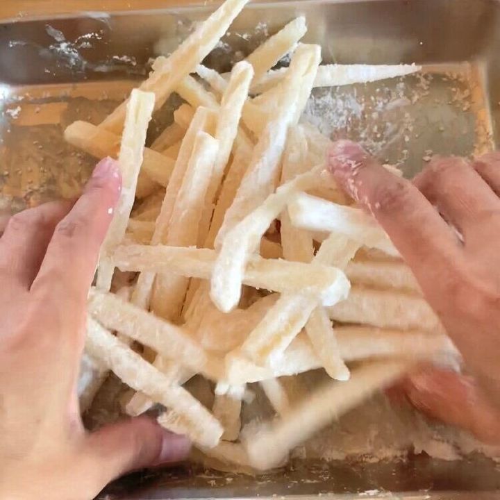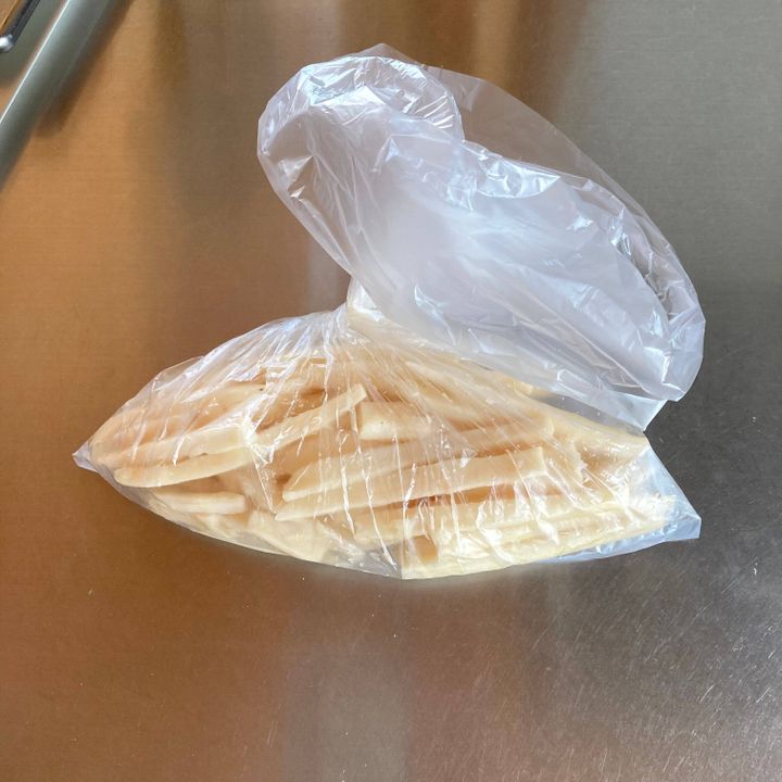 じっくり揚げれば、ずーっとカリカリなので、ポテトのように急いで食べなくてもOK。