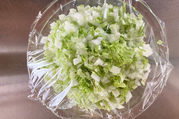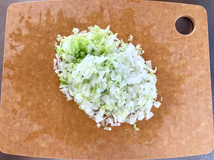 1.白菜は5mm幅に細切りしてからみじん切りにする。