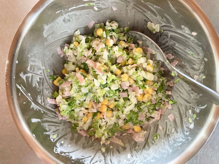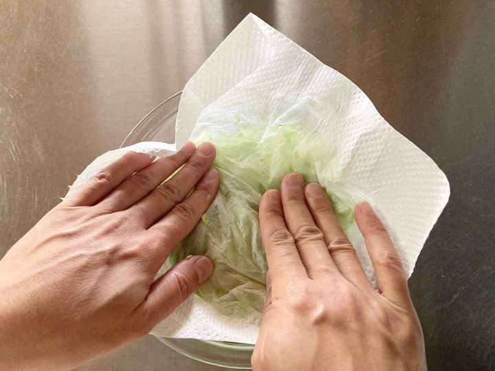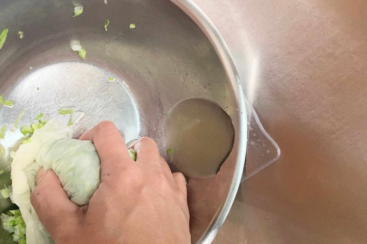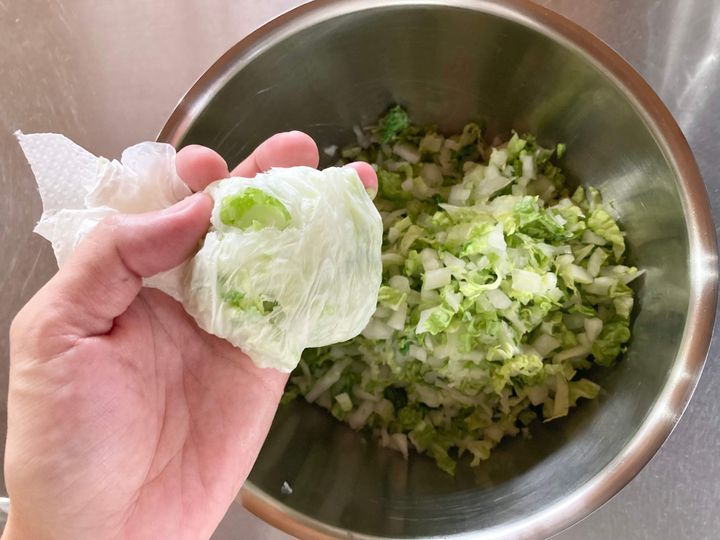 白菜は95%が水分といわれる野菜なので、まだまだ水分が出ます。このひと手間で、ベチャベチャになるのを防げますよ。