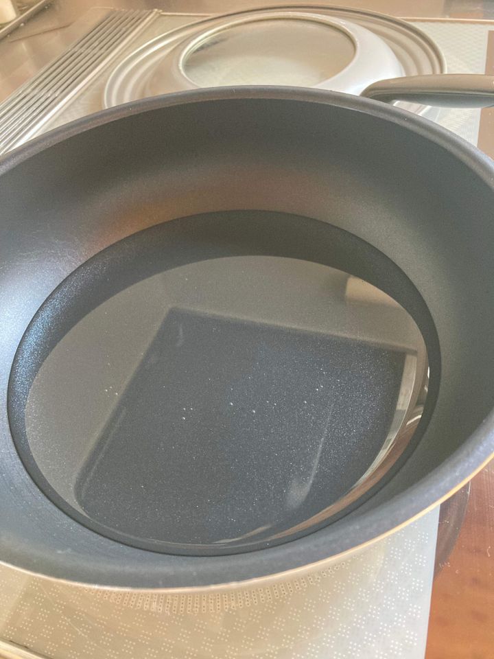 1.フライパンか鍋にお湯を1〜2cm入れて沸かし始める。