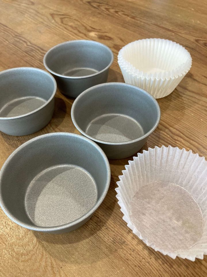 使用した型は、直径7.5cm(底面6cm)、高さ3.5cmです。グラシン紙(紙型)は10号深型を使用しました。