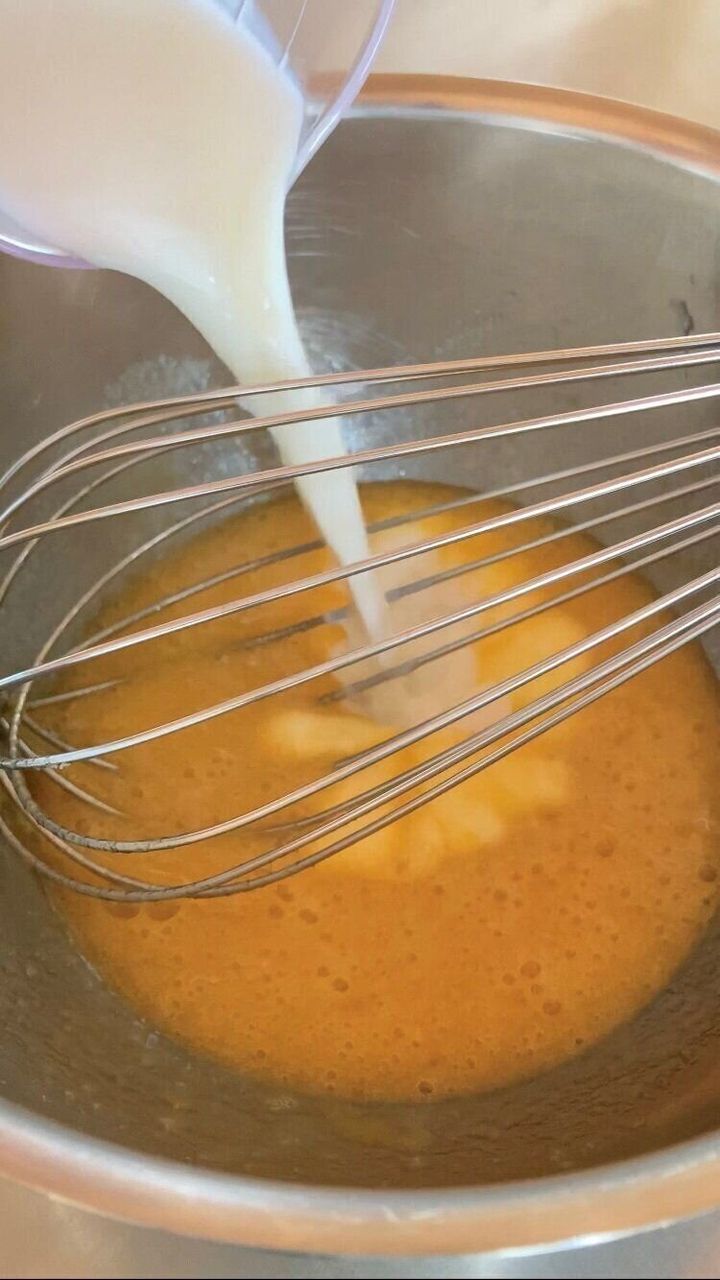 ・牛乳は少し温めると、卵が空気を抱き込んで柔らかい蒸しパンになります。