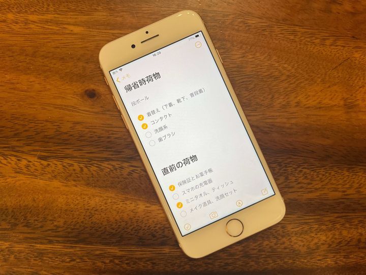 毎度だいたい持っていくものは同じなのでスマホのメモ(入れた物からチェックが付けられるので便利!)に書き込んであり、それを見ながら準備しています。