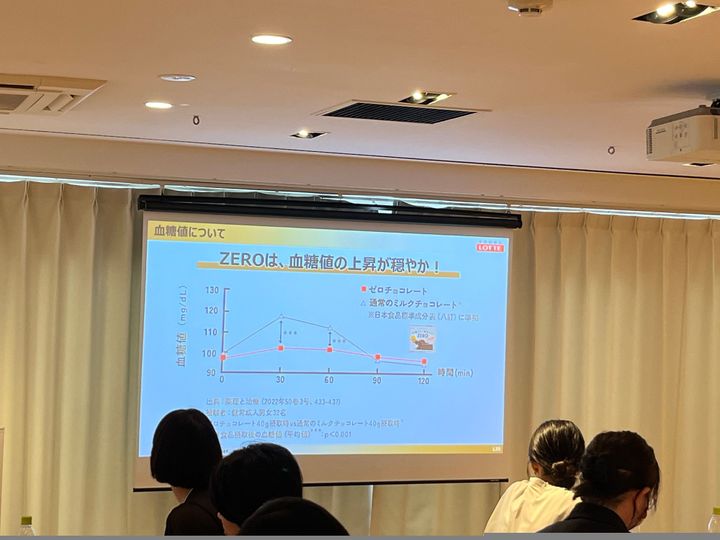 通常のミルクチョコレートよりゼロチョコレートの方が血糖値の上昇が緩やかなんです!