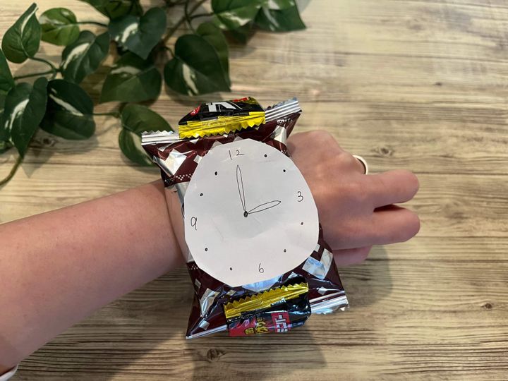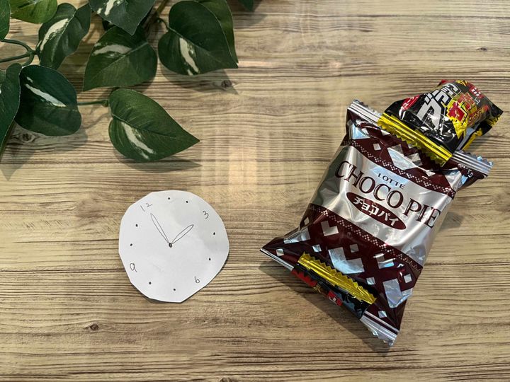 チョコパイが大きめなのでぶかぶかでしたが、お菓子の時計はちょぴりテンションが上がります!