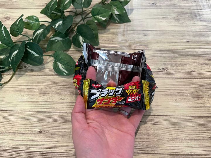 チョコパイとブラックサンダーをセロハンテープで固定。