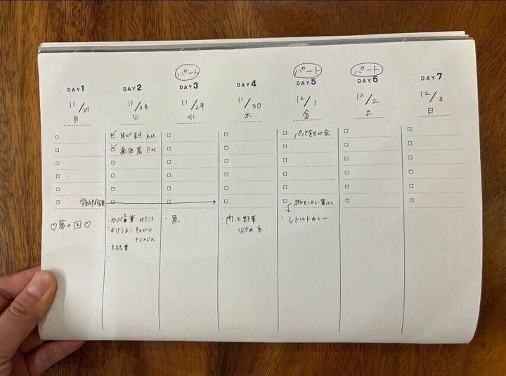 一週間見開きで【その日のやること】【その週のやること】を書き出して目で見られるように書き出しています。
