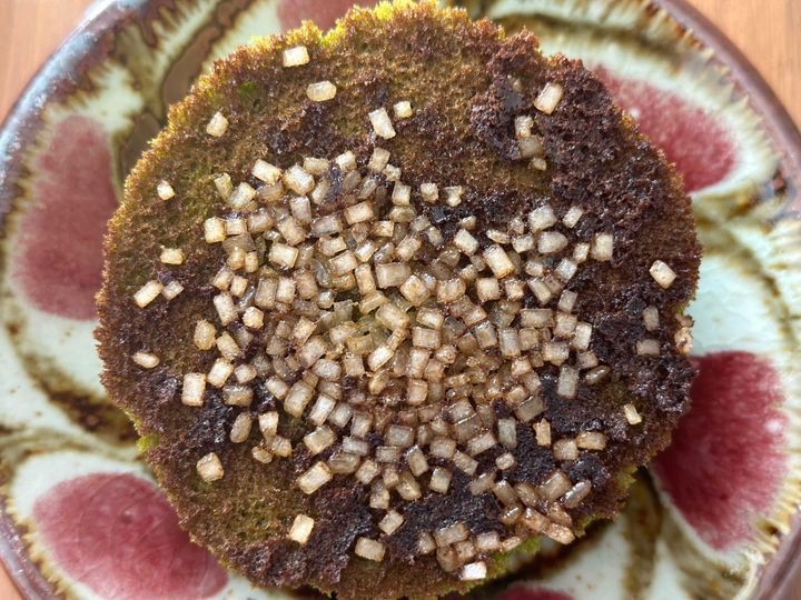 ぎゅっと詰まった濃厚な抹茶生地に、ザクザク食感の甘いザラメが良く合います。