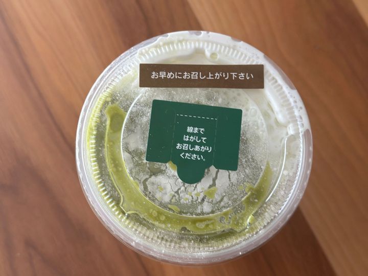 ここでお気づきの方もいらっしゃるかもしれませんが、Uber eatsで注文するとフラペチーノ注文時にかぶせられているドーム型のフタではなくフラットタイプのフタで届きます。