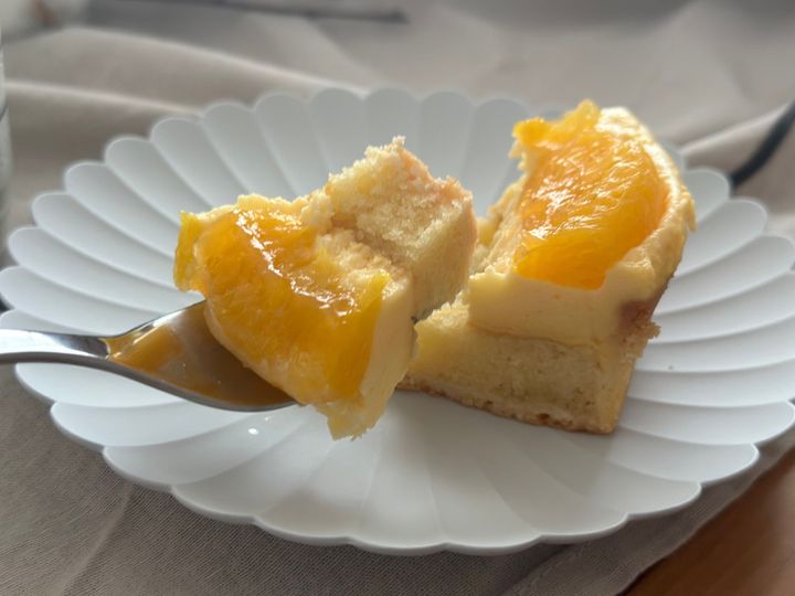 「抹茶クリームドーナツ」「アーモンドミルクの紅茶オートミールケーキ」「オレンジのシブーストタルト」が登場しており、迷いましたが見た目にも鮮やかな「オレンジのシブーストタルト」をチョイスしました。
