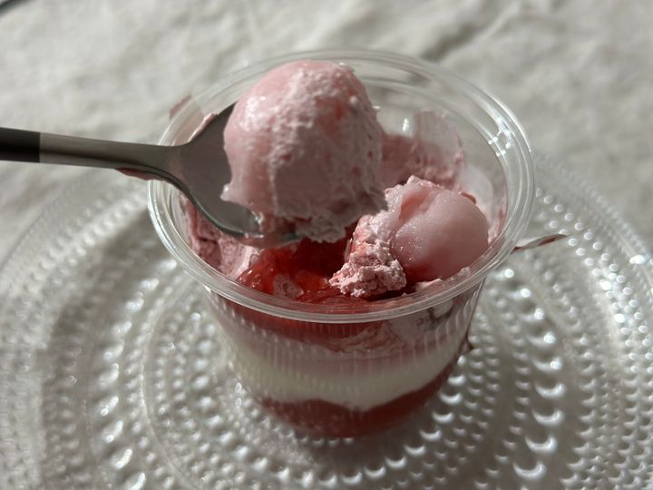 【セブン新商品】鉄板の組み合わせ!見た目もかわいい「苺ソースとレアチーズのももいろパフェ」