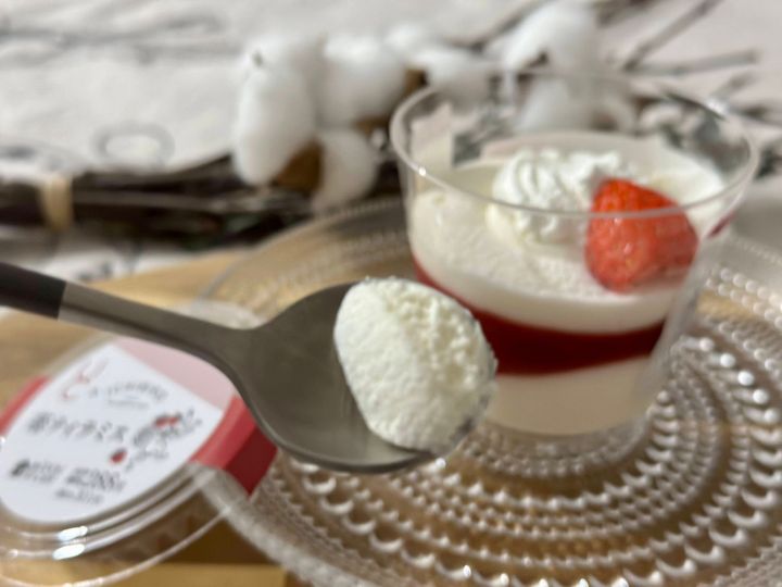 生の苺がトッピングされているだけあって、蓋を開けた瞬間苺の良い香りがふんわり。
