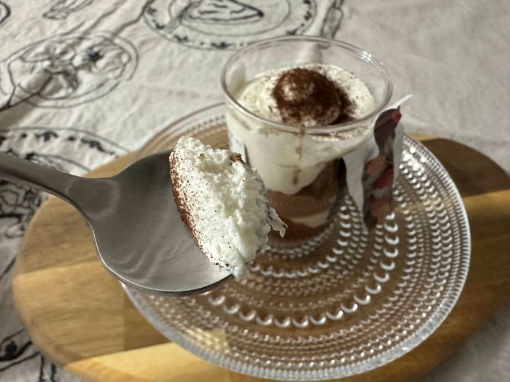 見た目はティラミスっぽいのですが、開けた瞬間ものすごくバナナの良い香りが!