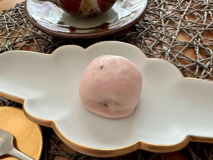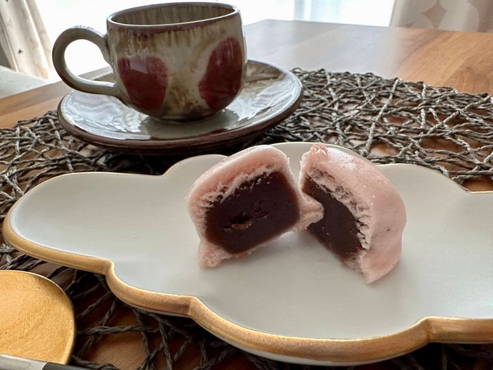 ほんのりピンクが美しいやや薄めの皮は桜の風味。あんこはなめらかな舌触りの こし餡。あんこがたっぷりなので小ぶりながらも食べ応えがあり、1つでも十分満足できるスイーツでしたよ。
